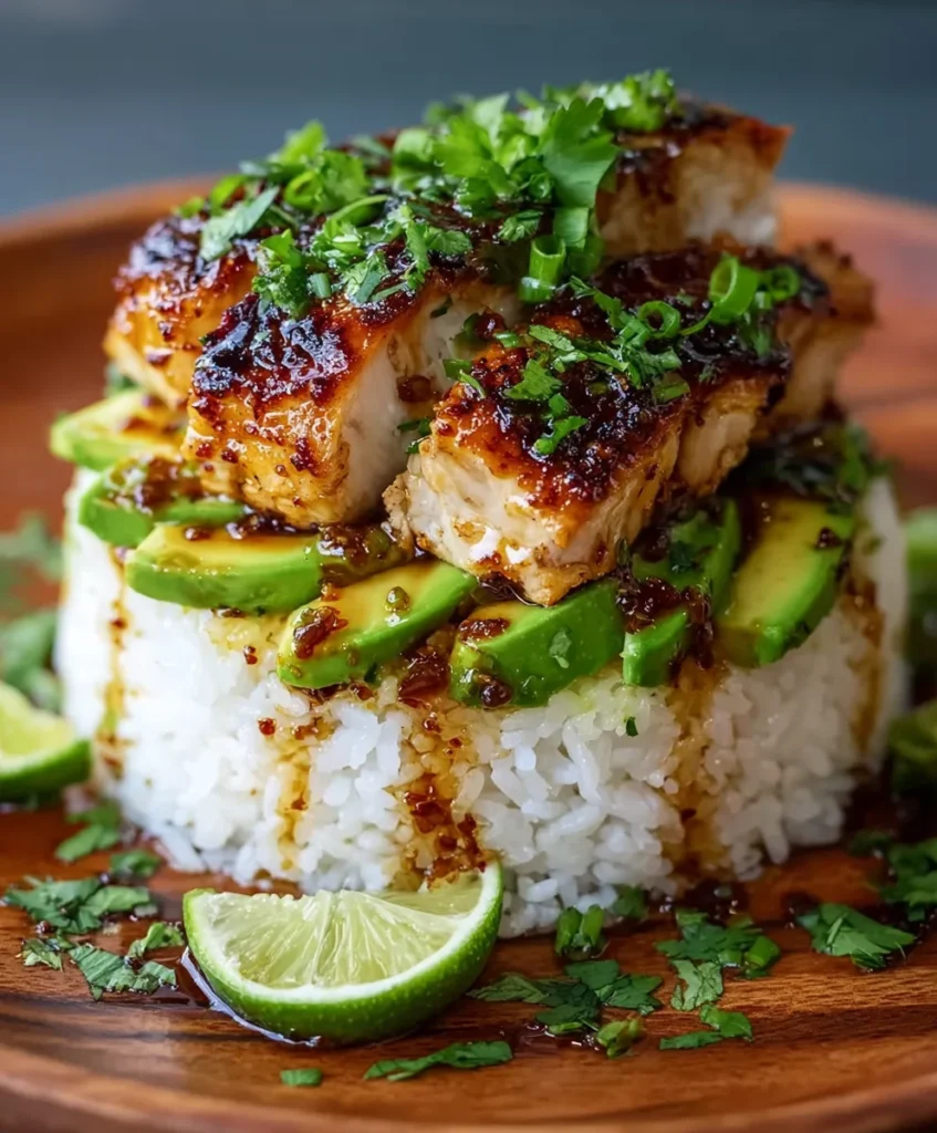 Honey Lime Chicken & Avocado Rice Stack is more than just a meal; it’s an edible work of art that tantalizes both the eyes and the taste buds. Imagin extracte …