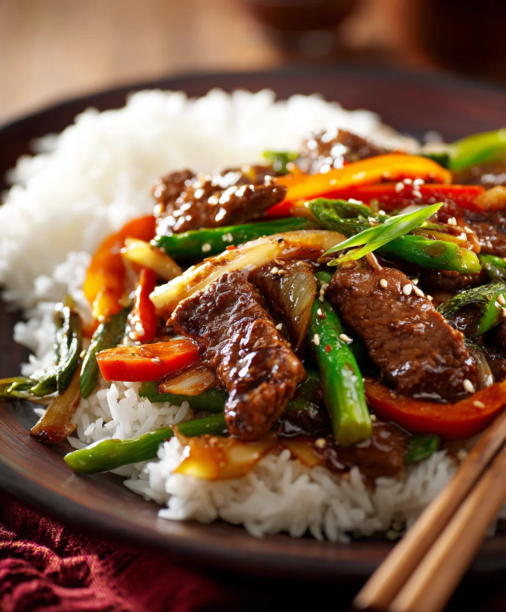 A classic Chinese pepper steak stir fry recipe featuring tender beef, colorful bell peppers, and a savory sauce.