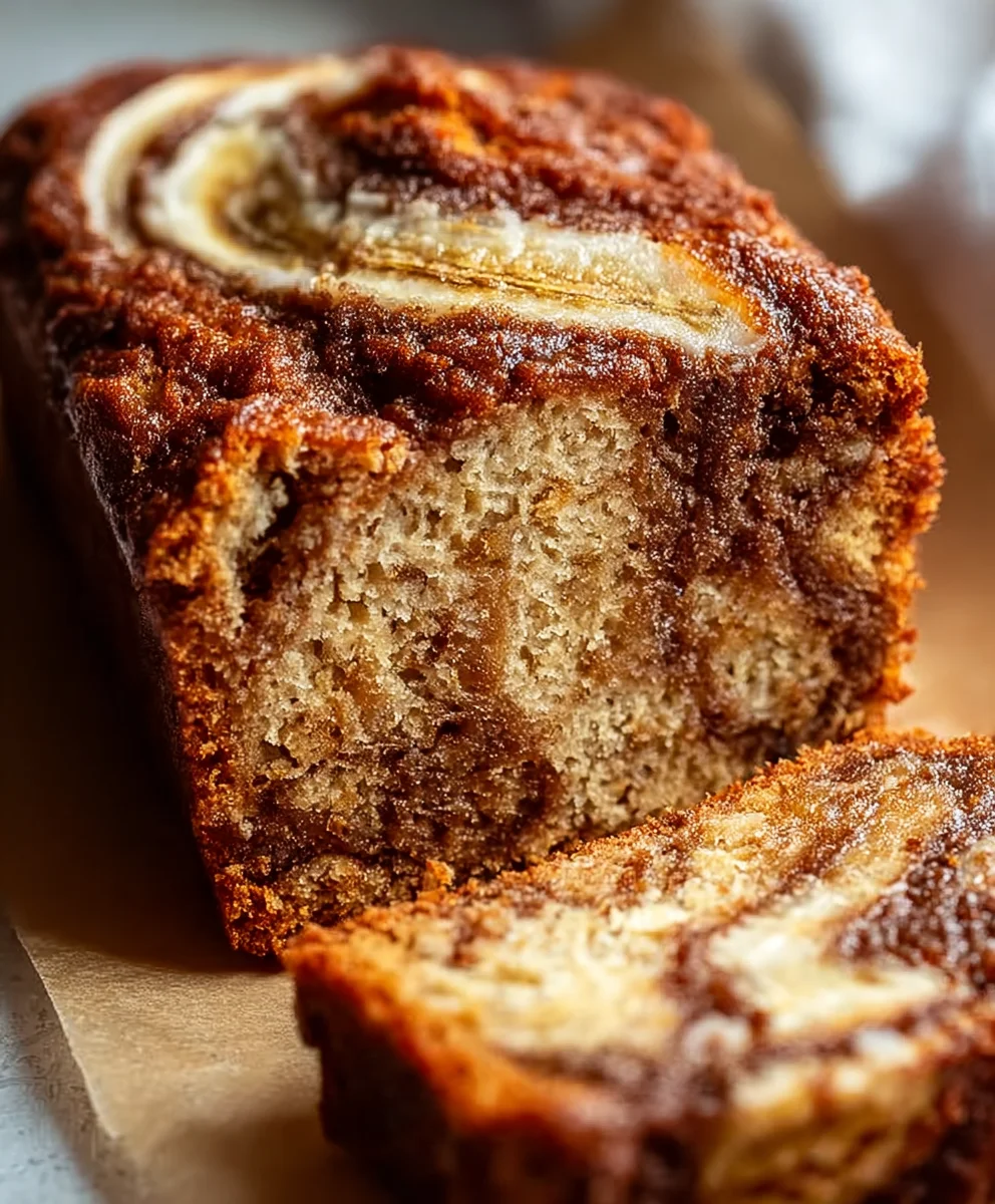 A moist and flavorful banana bread swirled with decadent cream cheese and warm cinnamon sugar.