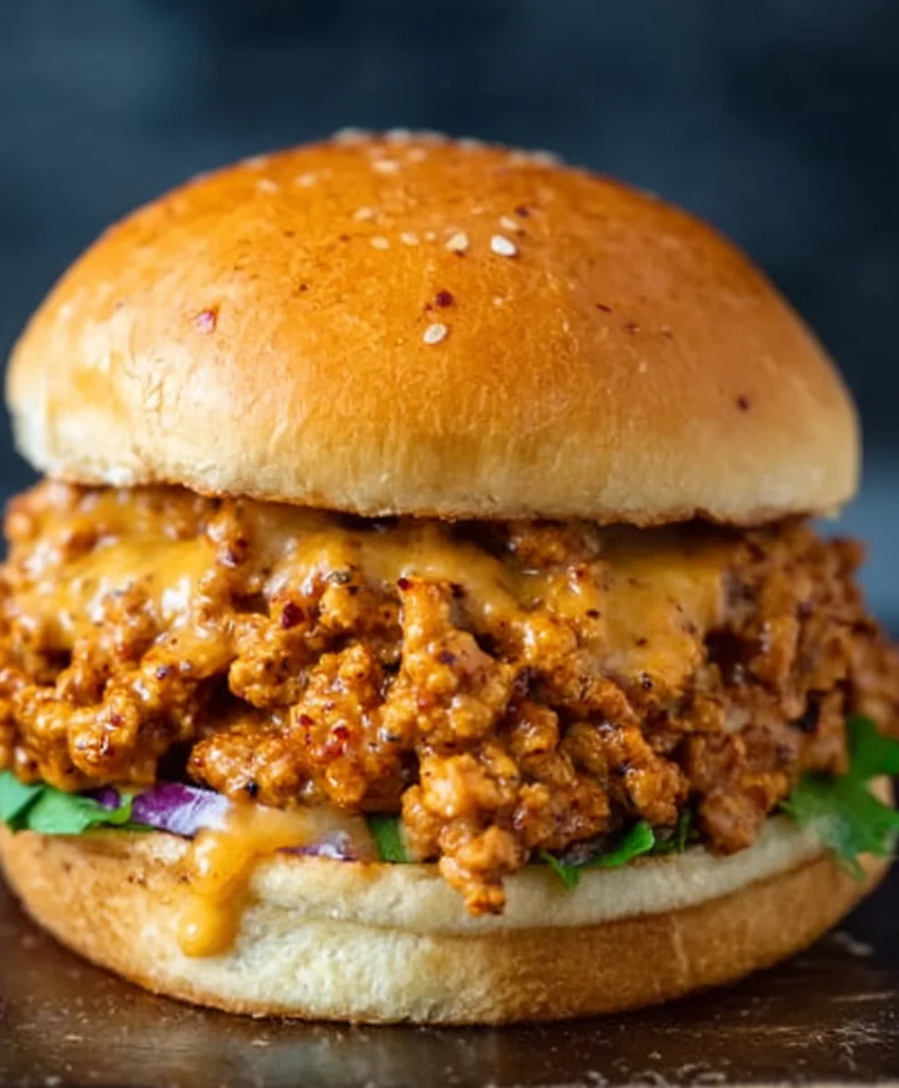 A flavorful and spicy twist on the classic sloppy joe, featuring ground chicken seasoned with Cajun spices and a creamy, cheesy finish. Perfect for a quick and delicious meal.