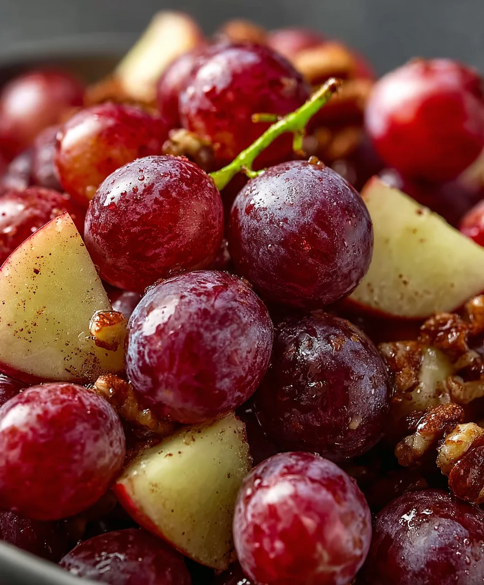 For this Cinnamon Apple Grape Salad, it’s best to use apples that hold their shape well and have a good balance of sweetness and tartness. Varieties like Honeycrisp, Fuji, Gala, or Granny Smith are excellent choices. Granny Smith will add a lovely tartness to balance the sweetness.